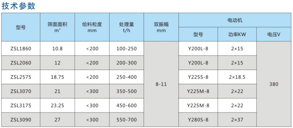 ZSL系列大型冷礦振動篩屬于雙軸直線振動篩,由兩臺電動機通過傳動軸外拖動激振器作反向自同步旋轉,使篩箱產生較大振幅的直線振動,電機不參振,這種振動篩具有生產能力大、工作可靠、振幅調節方便、傳給基礎的動負荷小等優點。已廣泛用于冶金、礦山、煤炭、港口等工業部門,主要用于溫度在150°C以下;冷燒結礦分級作業。