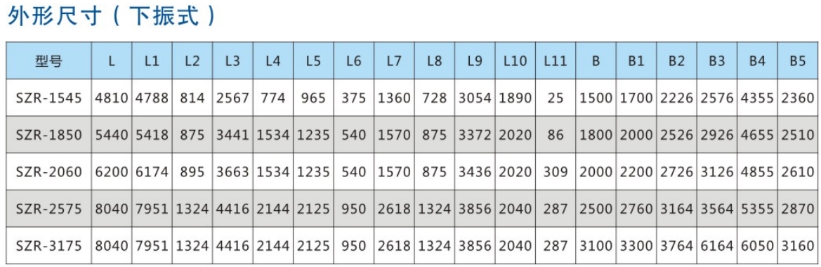 SZR系列熱礦振動(dòng)篩主要用于冶金行業(yè)溫度在600-800°℃的中、小粒級(jí)燒結(jié)礦的分級(jí),并完成向冷卻設(shè)備的均勻布料作業(yè)。